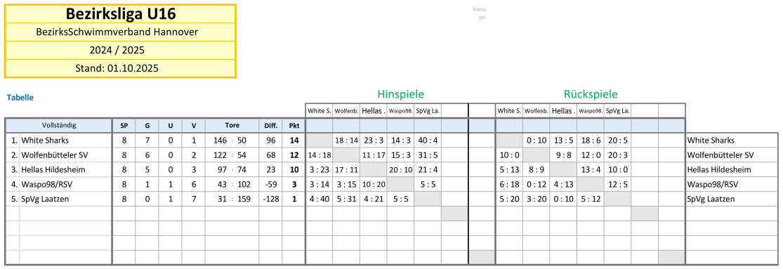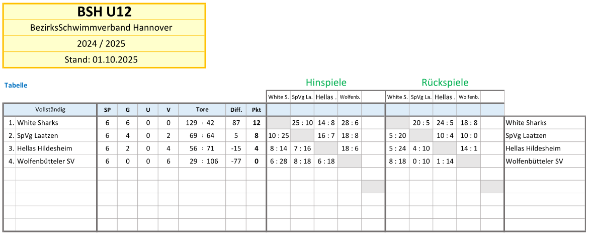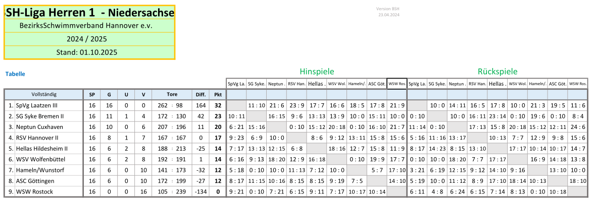 Die aktuellen Endtabellen 2025 der weiteren Herren- und Jugendteams (Bezirks Schwimmverband Hannover – BSH) sind direkt hier einzusehen:
